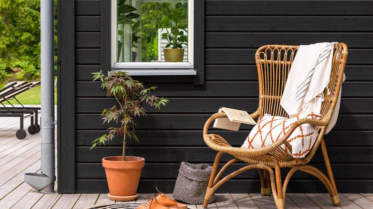 Testa gärna en matt fasadfärg som dämpar den svarta nyansen något. Svart förstärker andra kulörer vilket gör att grönskande sommarväxter och blommor framträder extra mycket en vacker sommardag.
