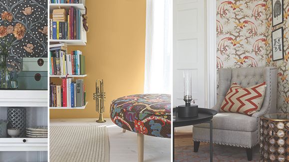 En nytolkning av den dekorativa Art Deco-stilen kommer stort i år, vilket medför en rad olika dekorativa växt- och blommönster på tapeter, textilier och keramik. De klassiska växtmönstren på tapeterna är stiliserade och dekorativa och kan i vissa fall associeras med William Morris tidlösa formspråk. Den som föredrar en lite lugnare mönsterbild väljer någon av de klassiska retrotapeterna med diskretare former och med färre färger. I denna miljö passar ett mörkt massivt trägolv perfekt.