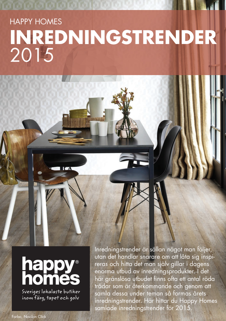Inredningstrender är sällan något man följer, utan snarare en inspirationskälla till sådant man gillar i dagens enorma utbud av inredningsprodukter. I detta gränslösa utbud finns ofta ett antal röda trådar som är återkommande och genom att samla dessa under teman har Happy Homes urskiljt ett antal inredningstrender för 2015. Nu när året snart är över kan vi summera hur det egentligen har gått.