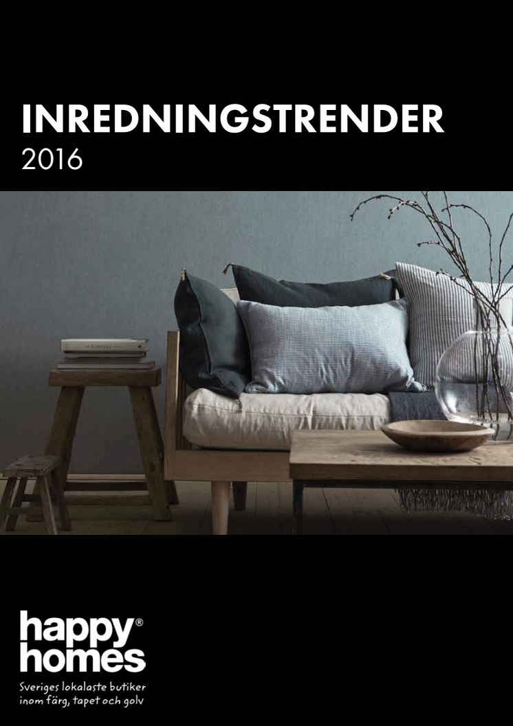 Happy Homes inredningstrender för 2016 beskriver aktuella inredningsstilar som illustreras med hjälp av tapeter, färg, golv, kakel och inredning. Förhoppningsvis landar trendrapportens alla intryck slutligen i ett personligt uttryck, där du väljer det som passar just dig för att skapa ett hem och en miljö där du och din familj trivs och mår bra, oavsett vilken trend som är aktuell just nu.