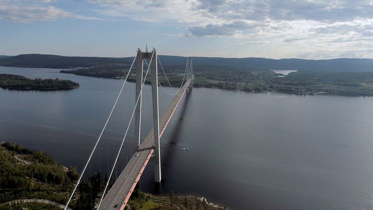 Flygbild Högakustenbron - en av världens längsta hängbroar