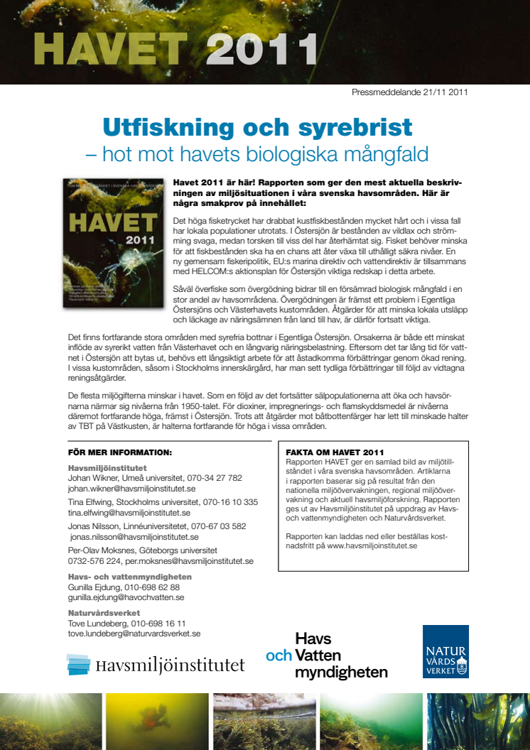 Havet 2011 är här! Rapporten som ger den mest aktuella beskrivningen av miljösituationen i våra svenska havsområden.