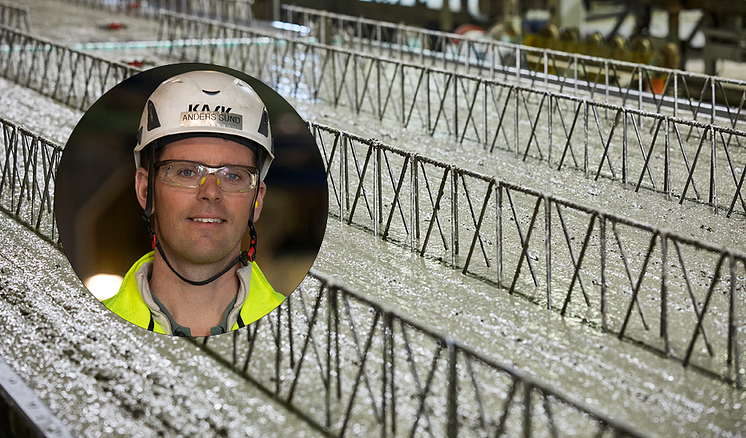 – Vi har optimerat processen och provkört den nya betongen med fina resultat. Nu är vi redo att anpassa för serietillverkning och köra igång produktion av plattbärlag i evoBuild nivå 5, säger Anders Sund.