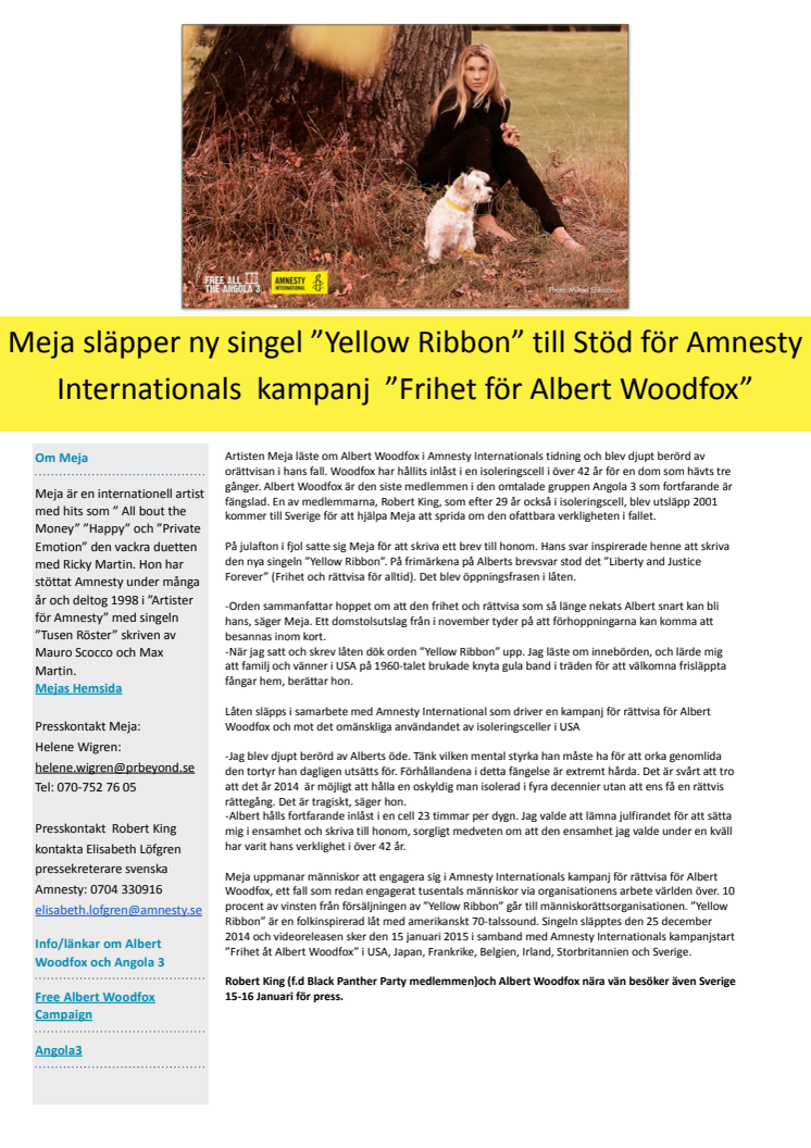 Meja släpper ny singel ”Yellow Ribbon” till stöd för Amnesty Internationals kampanj ”Frihet för Albert Woodfox”