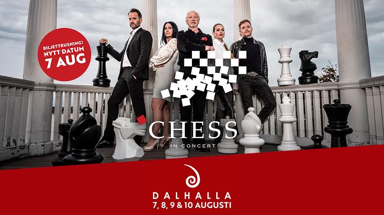 4 kvällar i augusti fylls Dalhalla av melodierna från “Chess”, när en exklusiv konsertversion intar landets vackraste utomhusscen. Det blir fyra unika kvällar den 7, 8, 9 och 10 augusti under bar himmel, med den tidlösa musiken framförd av några av våra främsta musikalartister, under ledning av stjärndirigenten Anders Eljas – den enda uppsättningen av “Chess” i Sverige under året.