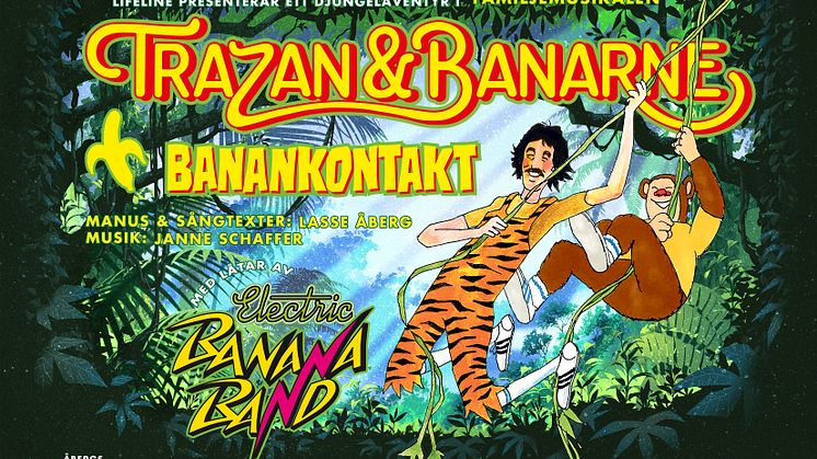 Lasse Åberg fyller 80 år i år, samtidigt som hans band Electric Banana Band med Janne Schaffer i spetsen firar 40 år. Dessa två jubileum firas med familjemusikalen Trazan & Banarne - Banankontakt som får sin turnépremiär lördagen den 3 oktober på Örebro Konserthus.