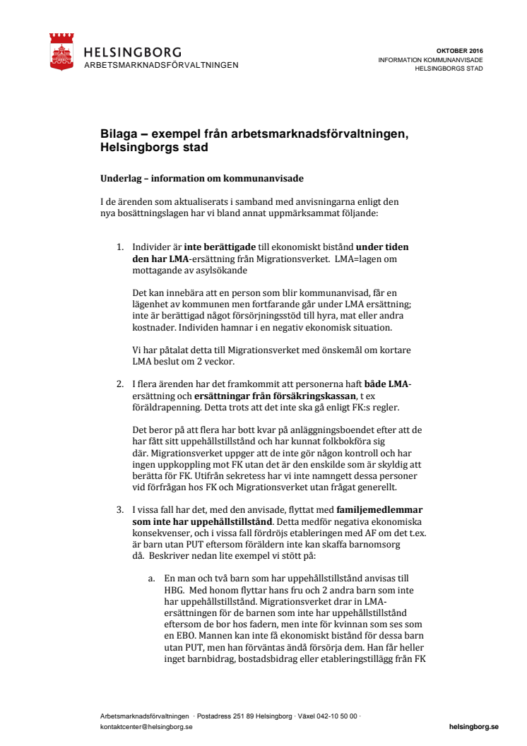 Bilaga till brev arbetsmarknads- och etableringsminister