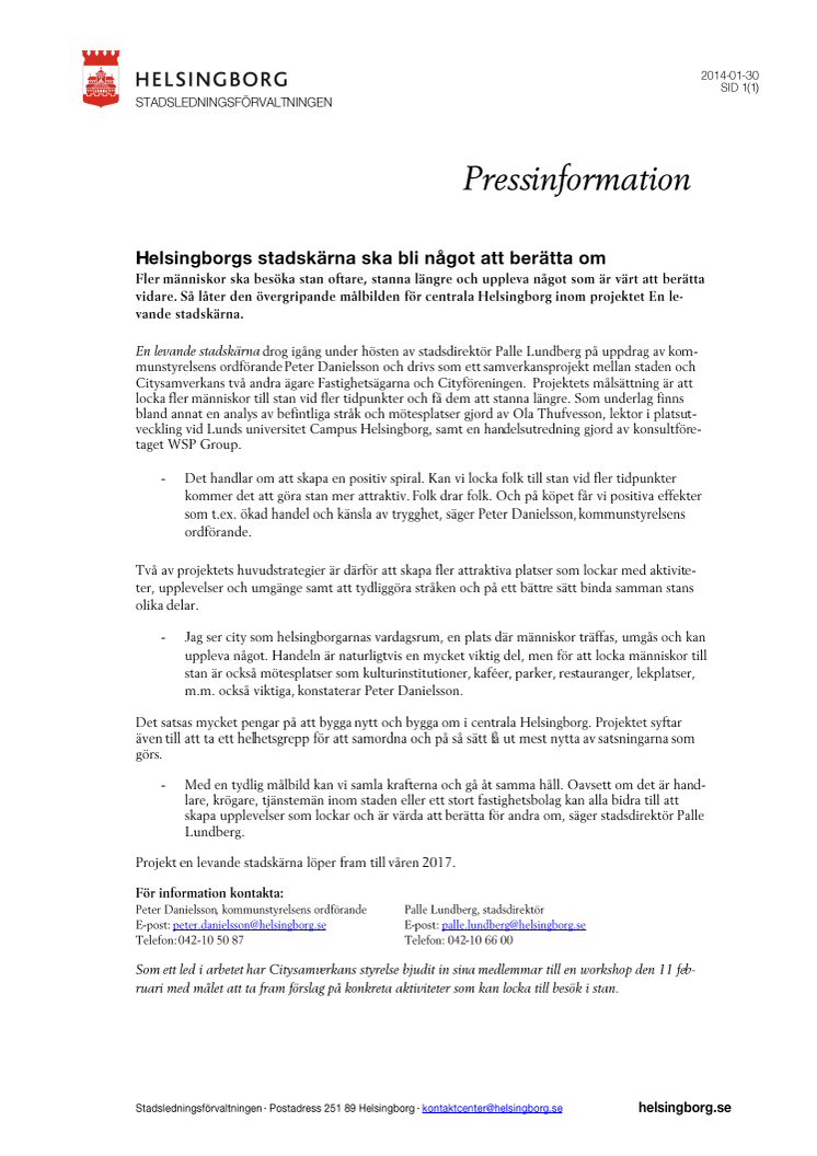 Fler människor ska besöka stan oftare, stanna längre och uppleva något som är värt att berätta vidare. Så låter den övergripande målbilden för centrala Helsingborg inom projektet En levande stadskärna.