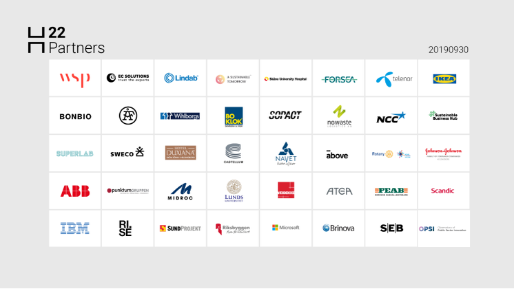 Idag presenterade Helsingborgs stad de första av de företag och organisationer som avser att samarbeta med staden inom ramen för stadsmässan H22 – A Smarter City. Totalt 40 aktörer återfinns på listan, bland andra Microsoft, BoKlok, IBM, IKEA, Nowaste och Lunds universitet. Fler företag och organisationer kommer att ansluta senare.