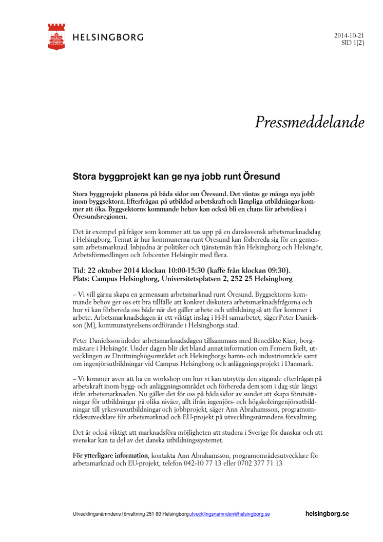 Stora byggprojekt planeras på båda sidor om Öresund. Det väntas ge många nya jobb inom byggsektorn. Efterfrågan på utbildad arbetskraft och lämpliga utbildningar kommer att öka. Byggsektorns kommande behov kan också bli en chans för arbetslösa i Öresundsregionen.