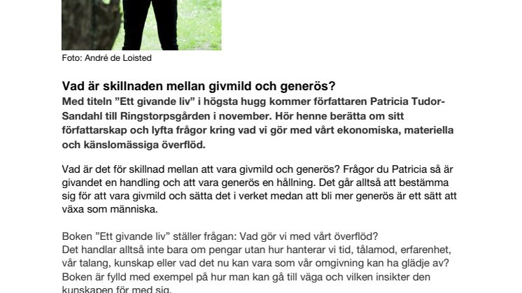 Möt Patricia tisdag 12 november 18:00 på Ringstorpsgården.