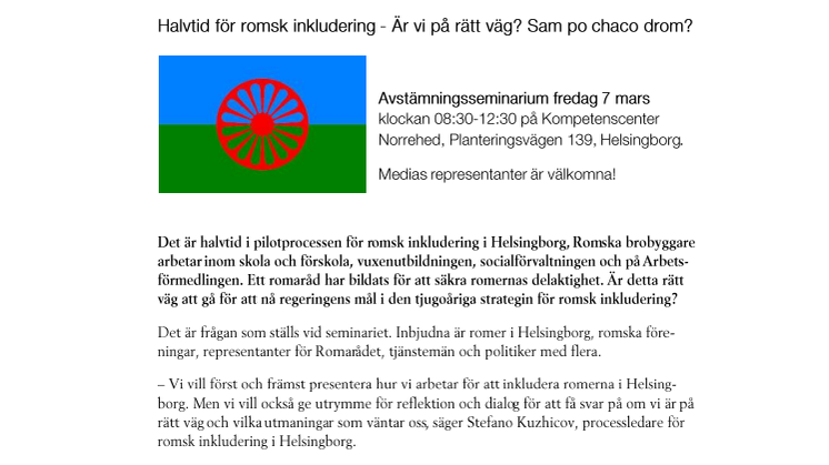 Det är frågan som ställs vid seminariet. Inbjudna är romer i Helsingborg, romska föreningar, representanter för Romarådet, tjänstemän och politiker med flera.