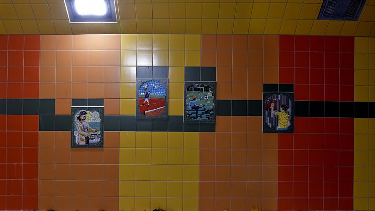 Konstnärerna Ingrid Sandsborg och Björn Carnemalm valdes för sin erfarenhet av att arbeta med kakling i offentliga miljöer och deras förmåga att skapa tillsammans med barn. Tillsammans med 27 barn från Vittraskolan och seniorer från Adolfsberg har de under en månad smyckat tunneln. Resultatet är 15 mosaiktavlor som föreställer barn från området, avbildade när de utövar sina fritidsintressen.