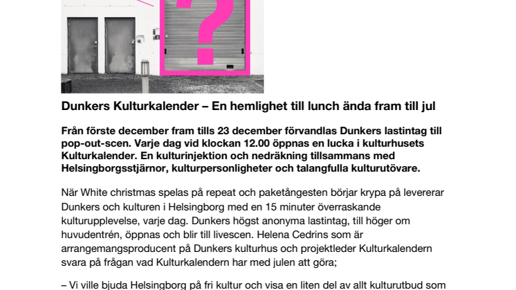 • ​Dunkers Kulturkalender – En hemlighet till lunch ända fram till jul