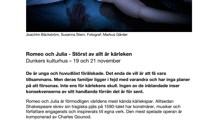 • Romeo och Julia visas på Dunkers 19 & 21 november