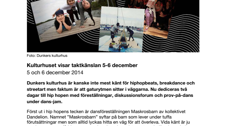 • Helsingborgs kulturhus visar hiphoprytmen 5-6 december