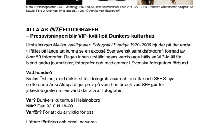 • PRESSINBJUDAN: ALLA ÄR INTE FOTOGRAFER – Pressvisningen blir VIP-kväll på Dunkers kulturhus