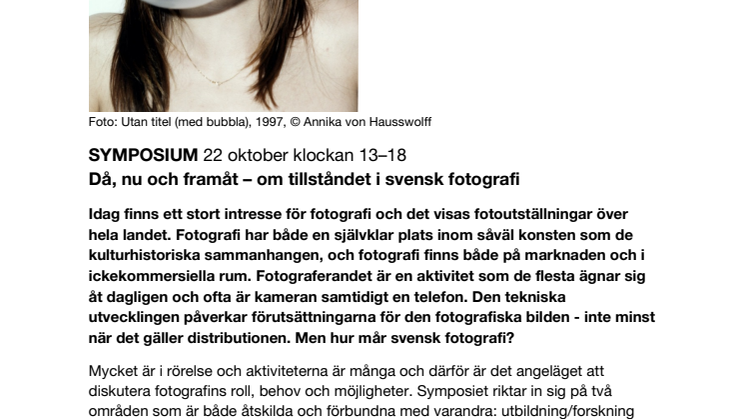 • PRESSINBJUDAN: Symposium om tillståndet i svensk fotografi