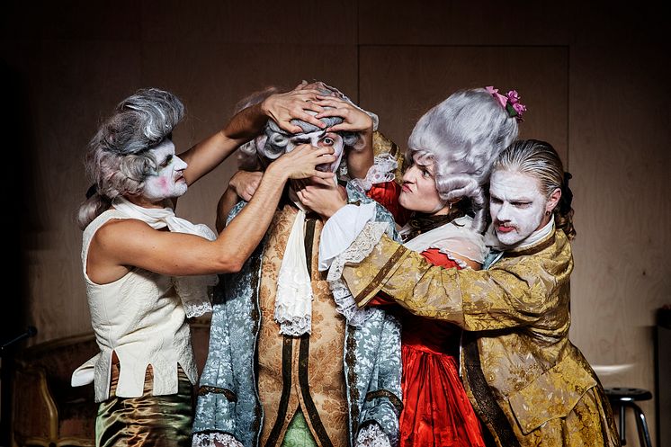 Regissören och koreografen Örjan Andersson förvandlar den stilbildande romanen Drottningens juvelsmycke till en koreograferad teaterkaramell med färgsprakande kostymer, snabba vändningar och mycket humor.