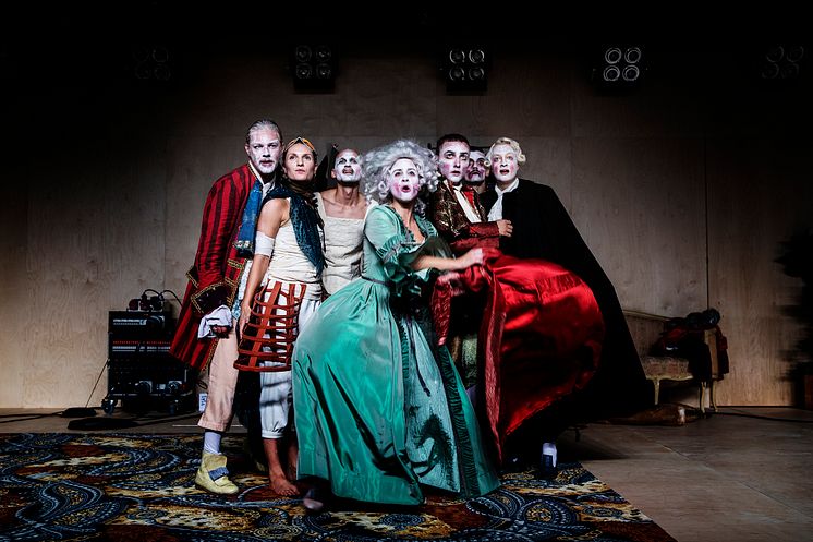 På bild: Gustav Berg, Sophie Augot, Jernej Bizjak, Emma Mehonic, Einar Bredefeldt, Javier Perez Perez och Karin Li Körsbärsdal medverkar i Drottningens juvelsmycke (Sasha Becker och Annika Kofoed saknas på bilden).
