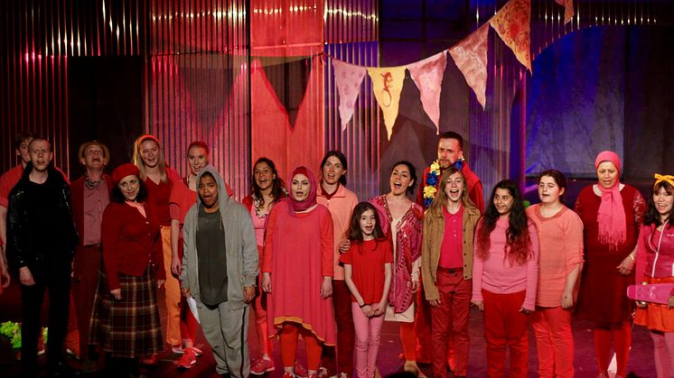 Den stora ensemblen består av skådespelare, dansare, musikalartister, sångare, boende från området, barn och ungdomar. Totalt är det över 40 personer på scen.