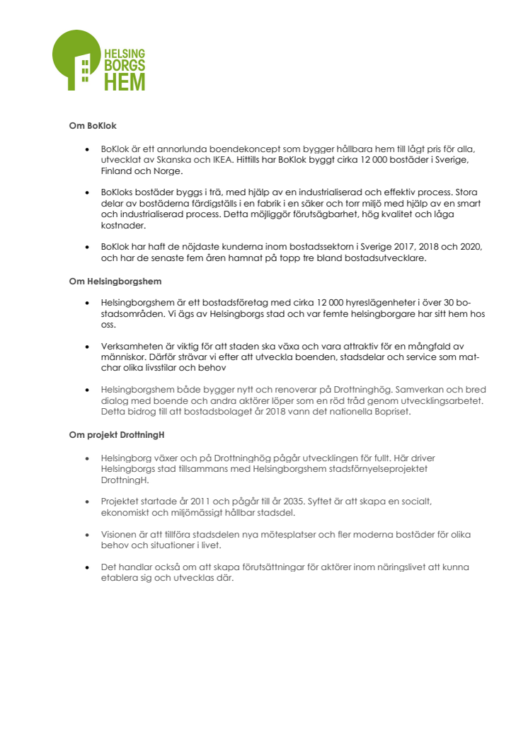 Om BoKlok, Helsingborgshem och projekt DrottningH
