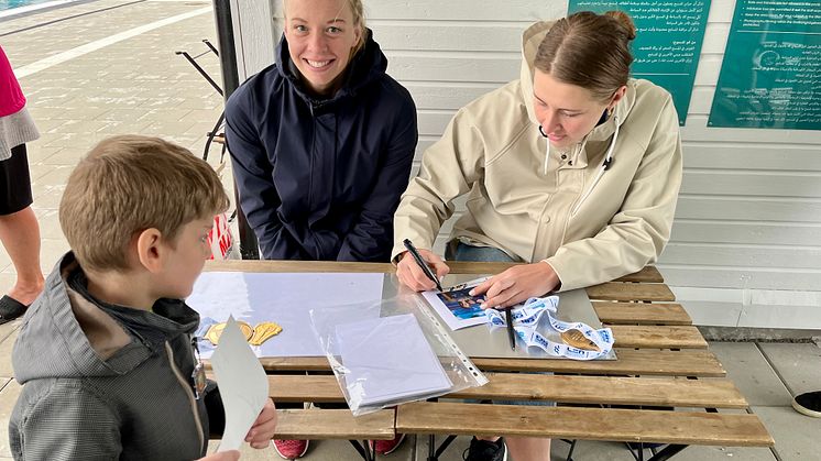 Att kunna simma ger en enorm frihet och trygghet, är en fantastisk träningsform och är dessutom väldigt roligt, berättar Louise och Sophie som passade på att prata med barnen på badet och skriva lite autografer.