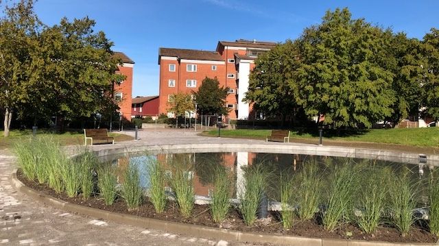 Renoveringen påbörjades i maj och den blev klar i september. Många idéer som kommit från dem som bor i området har blivit verklighet, särskilt önskemålet om en grön samlingsplats.