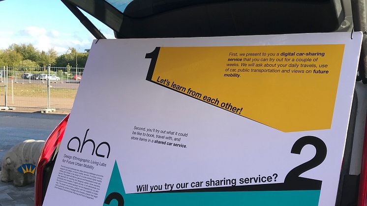 Som ett exempel rekryterar projekt AHA familjer på Drottninghög som vill prova på att dela en självkörande elbil via en digital tjänst under en period av ett par veckor i oktober. Bilen är dock inte självkörande på riktigt, utan det är en experimentbil från Volvo som kommer att köras av en anställd på Volvo under prova-på perioden.
