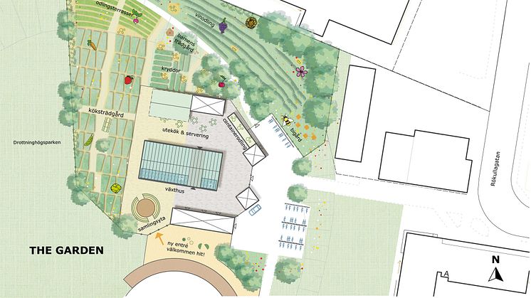 The Garden är en storskalig stadsodling, av frukt, grönsaker och kryddor. Det som produceras kommer att säljas dels via The Kitchen och The Market och dels via olika restaurangkök, bland annat på IKEA-varuhuset. The Garden blir en vidareutveckling av området vid det tidigare friluftsbadet, Drottninghögsbadet.