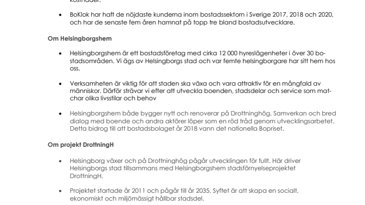 BoKloks byggnation på Drottninghög är en del av stadsdelsutvecklingsprojektet DrottningH, som ska pågå till 2035. BoKlok är en av de aktörer som är med och utvecklar Drottninghög i nära samarbete med Helsingborgshem och Helsingborgs stad. Nya bostäder ska byggas och befintliga renoveras, samtidigt som man bygger ut service & infrastruktur, utvecklar grönområden och mötesplatser.