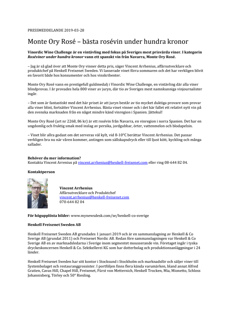 Vinordic Wine Challenge är en vintävling med fokus på Sveriges mest prisvärda viner. I kategorin Roséviner under hundra kronor vann ett spanskt vin från Navarra, Monte Ory Rosé.
