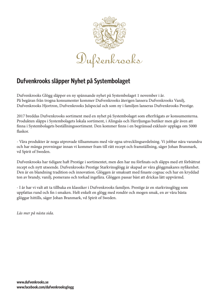 Dufvenkrooks släpper Nyhet på Systembolaget