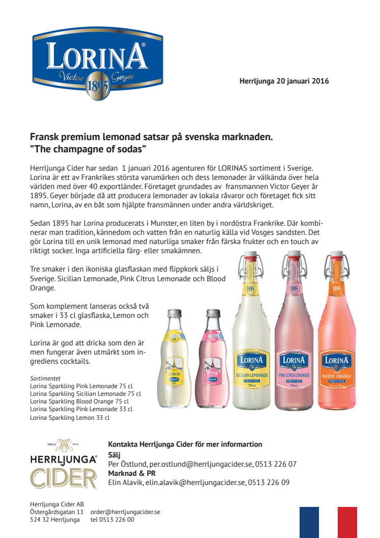 LORINA - Frankrikes ledande premium lemonad satsar på svenska marknaden