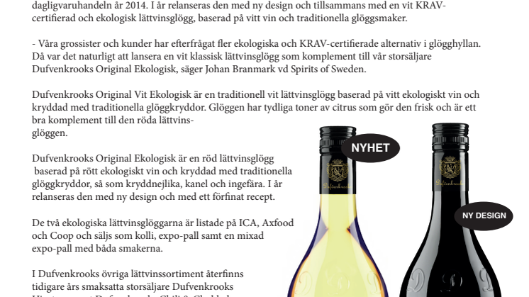 • Dufvenkrooks har mer KRAV på glöggsortimentet i år