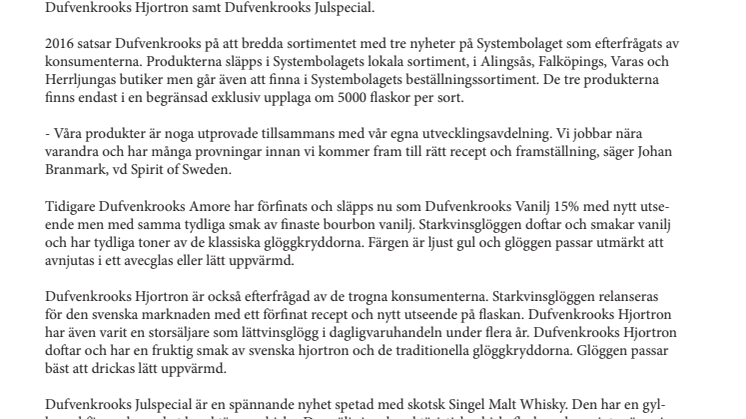 • Dufvenkrooks lanserar unik julmust på Systembolaget