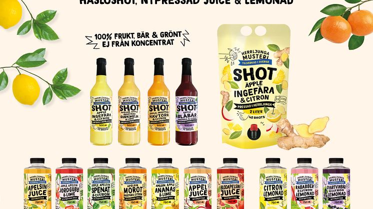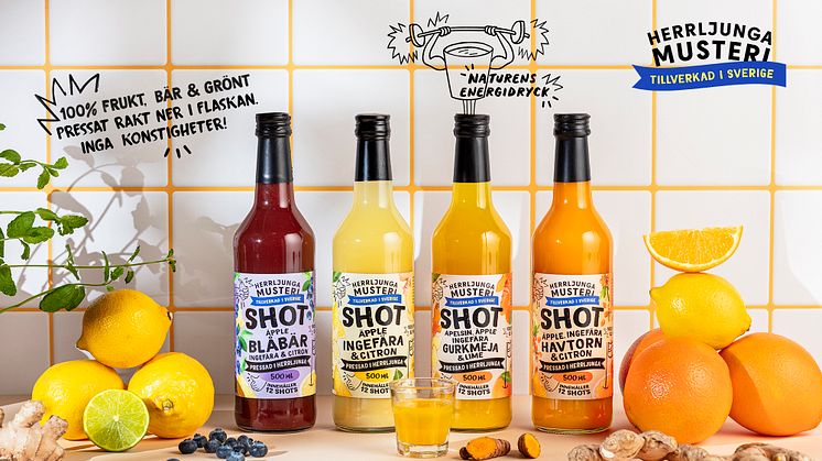 Våren 2023 landade nypressad juice och lemonad in under varumärket Herrljunga Musteri. Nu får även musteriets älskade hälsoshots sin nya look. Ny design men med samma goda smak!