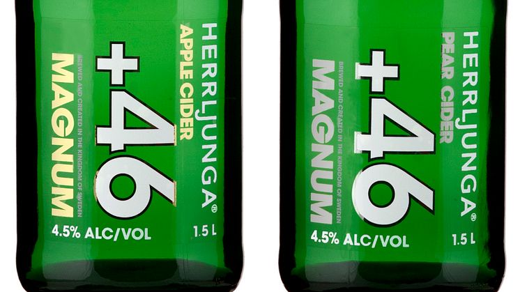 Herrljunga Cider släpper bokstavligen talat två stora nyheter. Cider på Magnumflaska från varumärket Herrljunga +46 lanseras i augusti 2012. Först ut är smakerna äpple och päron. Herrljunga Cider blir först på marknaden med starkcider på Magnumflaska.