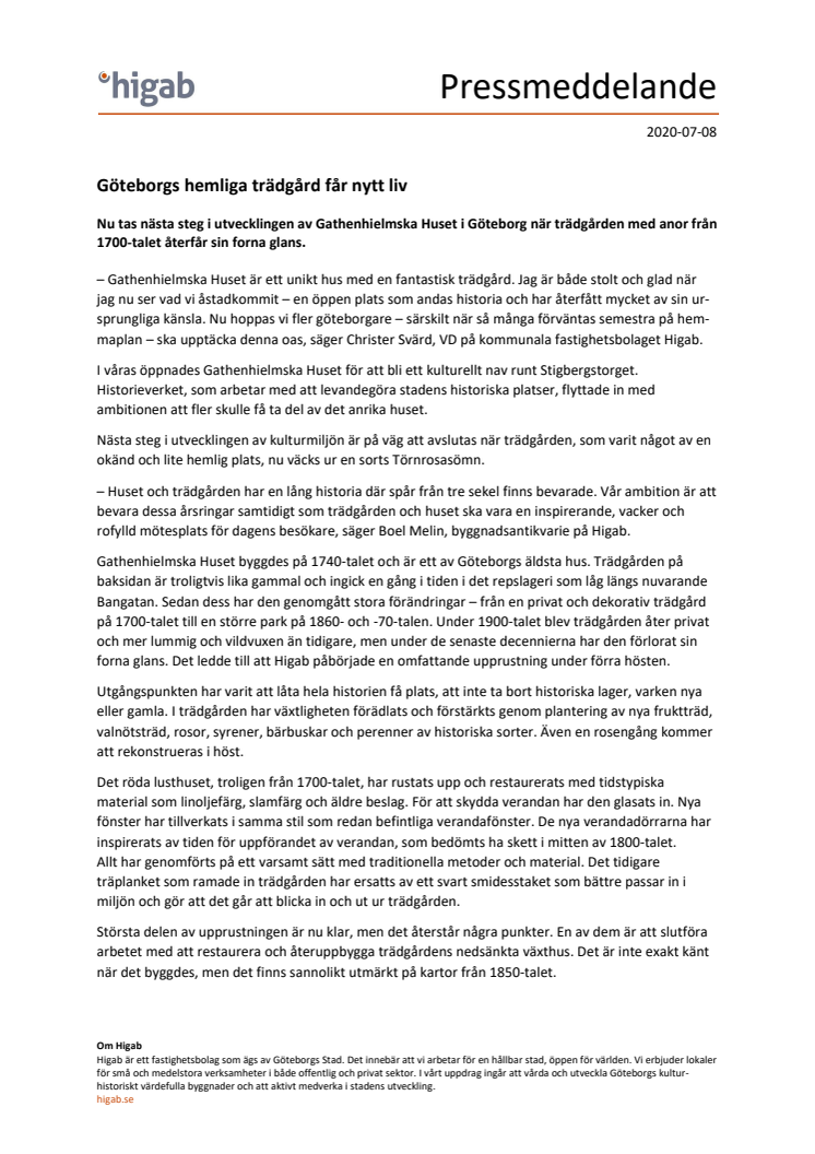 Nu tas nästa steg i utvecklingen av Gathenhielmska Huset i Göteborg när trädgården med anor från 1700-talet återfår sin forna glans.