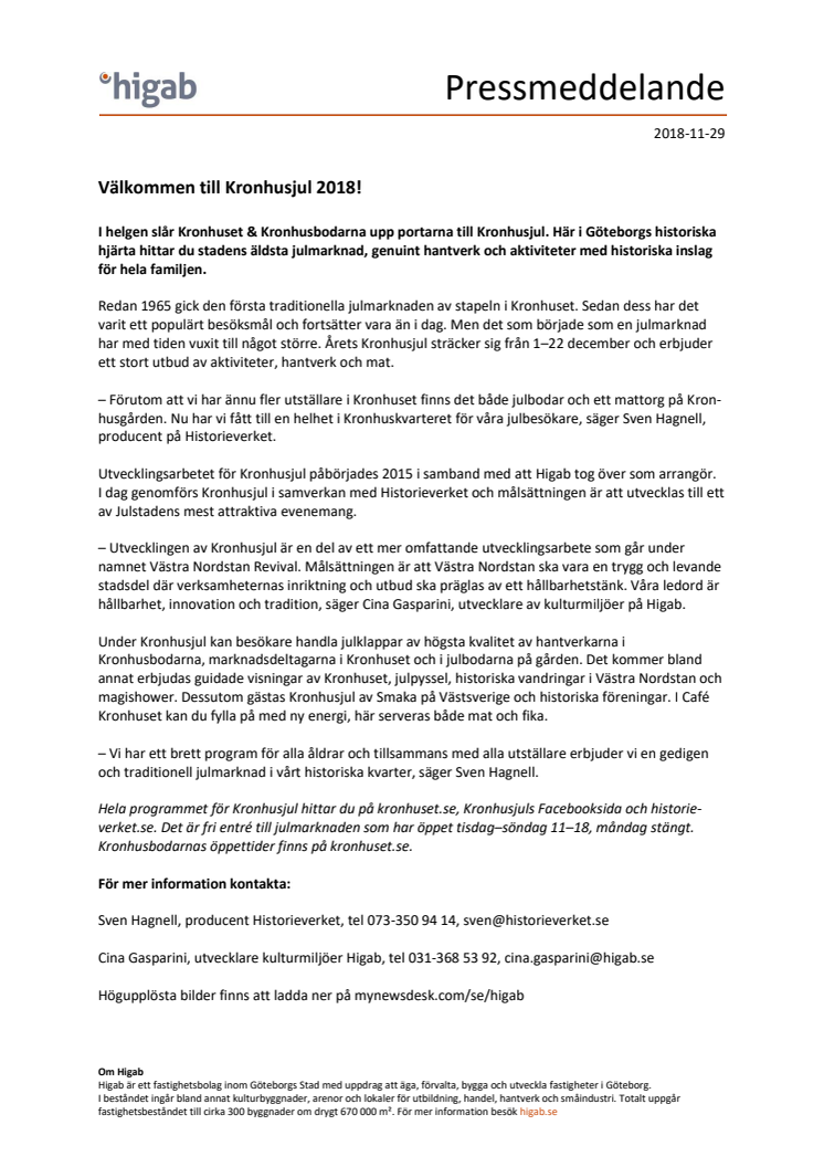 I helgen slår Kronhuset & Kronhusbodarna upp portarna till Kronhusjul. Här i Göteborgs historiska hjärta hittar du stadens äldsta julmarknad, genuint hantverk och aktiviteter med historiska inslag för hela familjen.