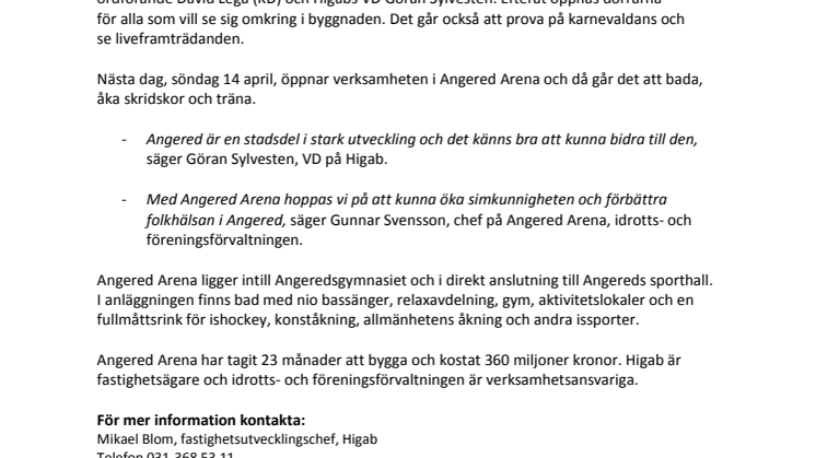 Alla är välkomna till invigningen som börjar kl 14 lördag den 13 april. Anna Johansson, (S) ordförande i idrotts- och föreningsnämnden, invigningstalar tillsammans med vice ordförande David Lega (KD) och Higabs VD Göran Sylvesten. Efteråt öppnas dörrarnaför alla som vill se sig omkring i byggnaden. Det går också att prova på karnevaldans ochse liveframträdanden.