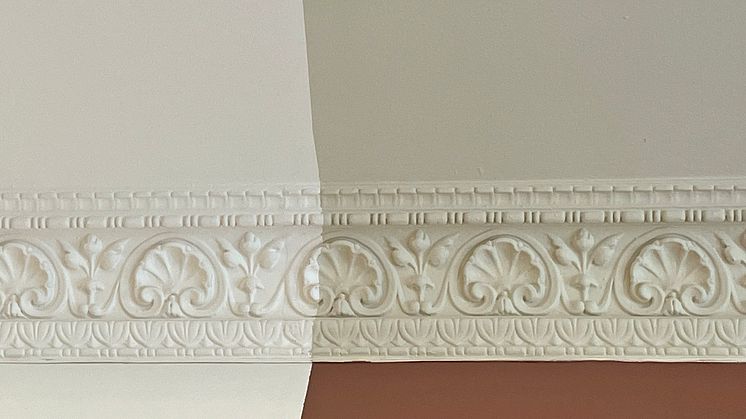 För den oinvigde kan det tyckas vara mycket diskussioner om en relativt liten detalj i ett stort projekt som Wernerska Villan, men det är viktigt att det blir rätt. Resultatet måste passa i den kulturhistoriska miljön, vara långsiktigt hållbart och tåla att människor kommer röra sig i huset – väskor som stöter mot väggar och skor som slår i lister kommer att slita på målningen. Blir det fel blir det både besvärligt och kostsamt att rätta till längre fram.