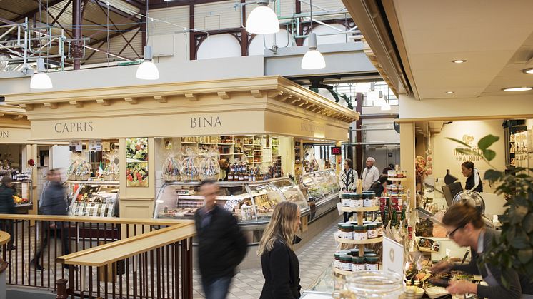 Inför julen har det gjorts flera insatser i Stora Saluhallen för att minska smittspridningen och skapa en trygg plats att handla. – Julhandeln ser annorlunda ut i år och vi gör vad vi kan för att skapa en saluhall utan trängsel för både handlare och kunder, säger Pontus Isaksson, fastighetschef på Higab.