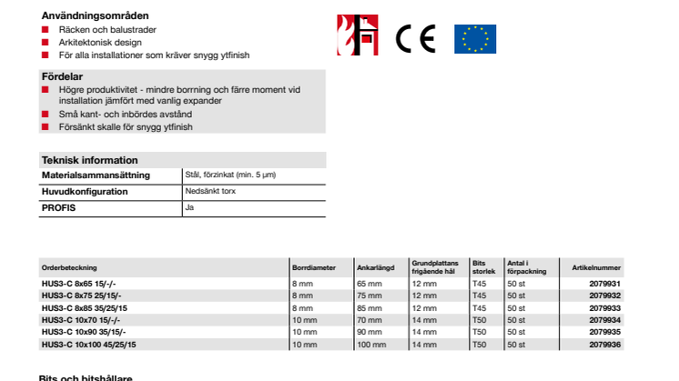 30% högre lastkapacitet – återanvändningsbara (!) skruvankare HUS3
