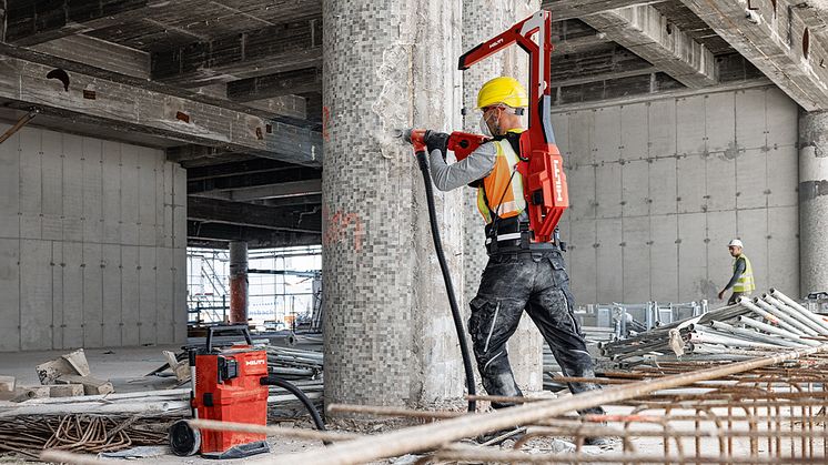 Hilti fortsätter att investera för en mer välmående byggbransch med lanseringen av EXO-T-22. Denna innovativa verktygskran är konstruerad för att avlasta användaren genom att hantera verktygsvikter upp till 17 kg, vilket minskar den fysiska belastningen och risken för belastningsskador vid tunga rivnings- och borrningsarbeten.