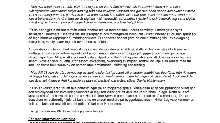 Läs gärna mer om PR 35 och Hilti på www.hilti.se.