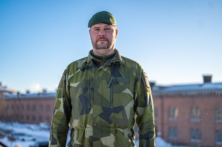 Överste Markus Höök föreläser på vårens andra populärvetenskapliga café på Högskolan i Skövde.