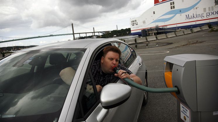 En anläggning för automatisk nykterhetskontroll av lastbilsförare införs i dagarna vid Stena Lines tysklandsterminal i Göteborg. Men för att kontrollen ska fungera måste föraren göra rätt. Instruktionerna som lastbilsföraren får vid alkobommen bygger på ett examensarbete i kognitionsvetenskap från Högskolan i Skövde.