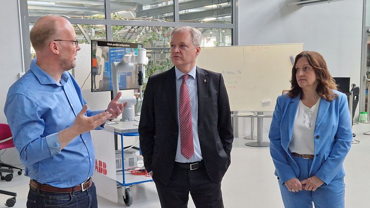 Sten Tolgfors, landshövding i Västra Götalands län, besökte Högskolan i Skövde fredagen 12 maj. Först på programmet var ett besök på ASSAR Industrial Innovation Arena, där olika aktörer inom teknikföretag och tillverkningsindustrin samverkar med Högskolan i Skövde.