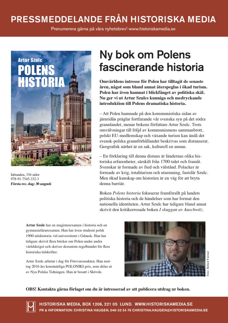 Omvärldens intresse för Polen har tilltagit de senaste åren, något som bland annat återspeglas i ökad turism. Polen har även hamnat i blickfånget av politiska skäl. Nu ger vi ut Artur Szulcs kunniga och medryckande introduktion till Polens dramatiska historia.